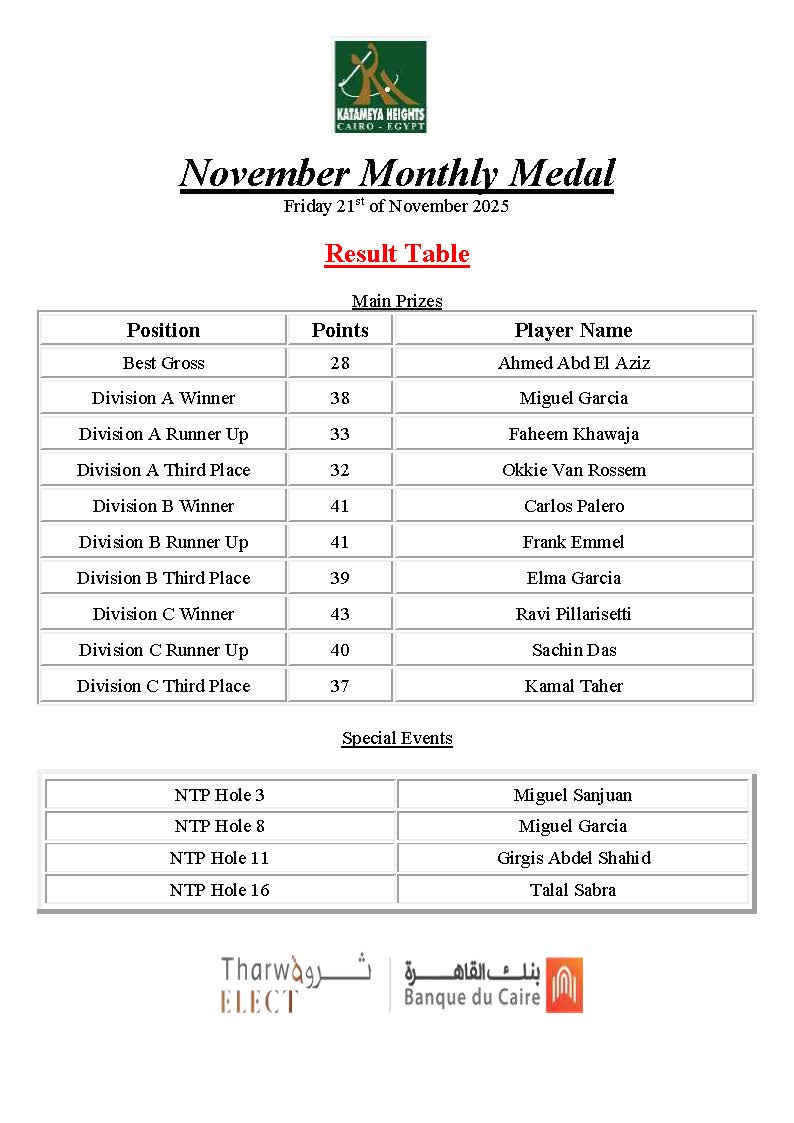 November Monthly Medal
