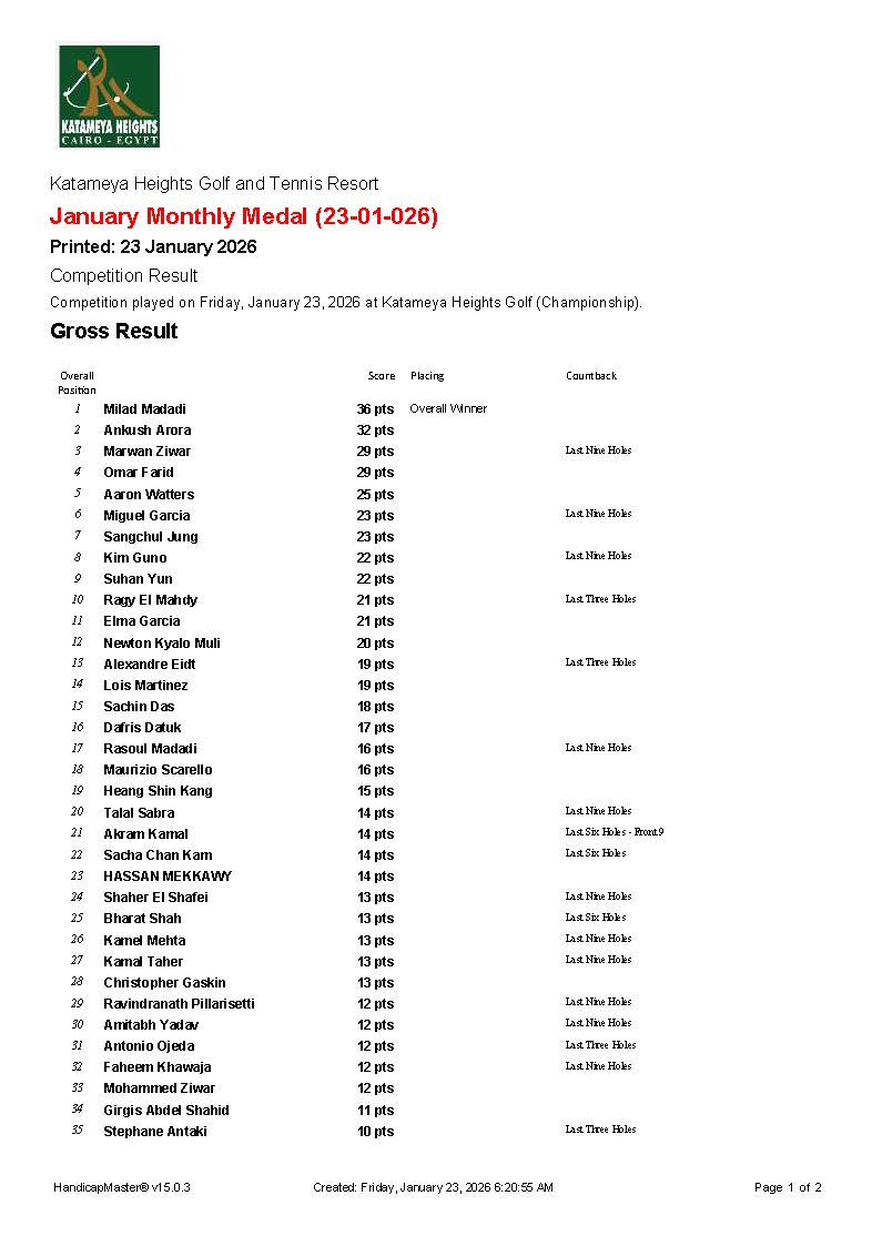 January Monthly Medal